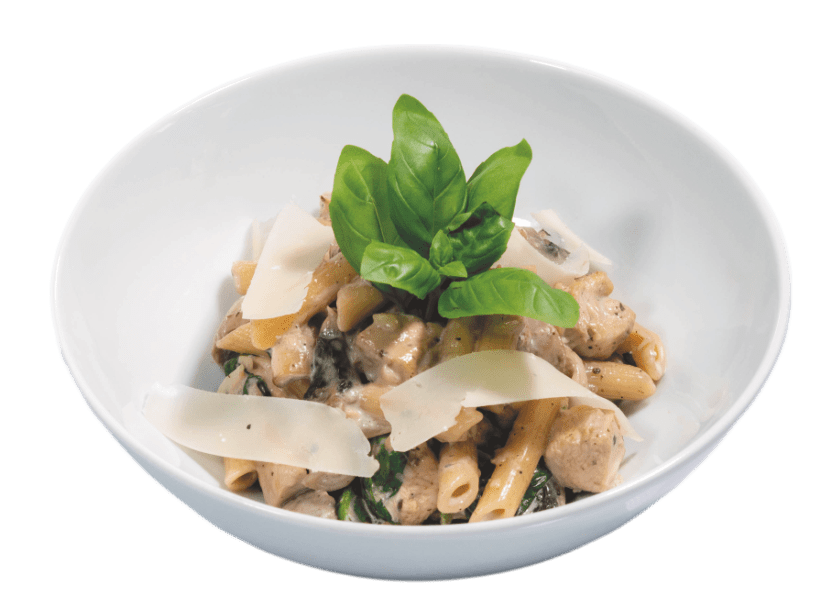 Makaron penne Al dente w delikatnym sosie, z soczystymi kawałkami kurczaka i dodatkiem świeżego szpinaku. Lekka, ale treściwa propozycja dla tych, którzy cenią klasykę z nutą włoskiego klimatu.